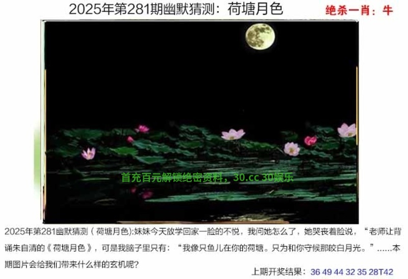 281期:马会传真解码【书香门第】开:羊47 解:指世代读书、有文化传承的家庭 综合生肖:羊兔龙蛇马狗鸡虎 |